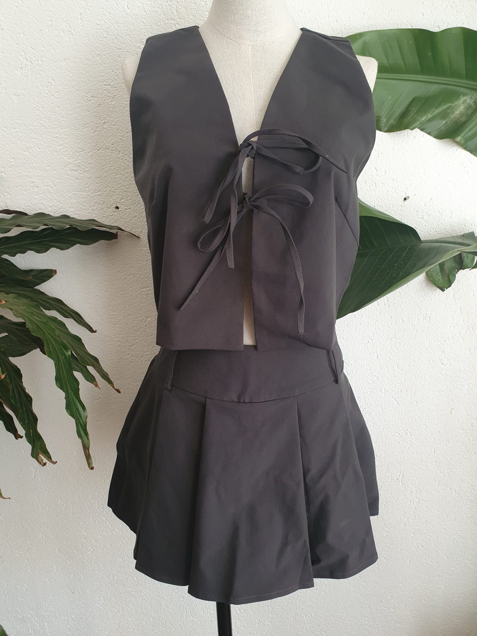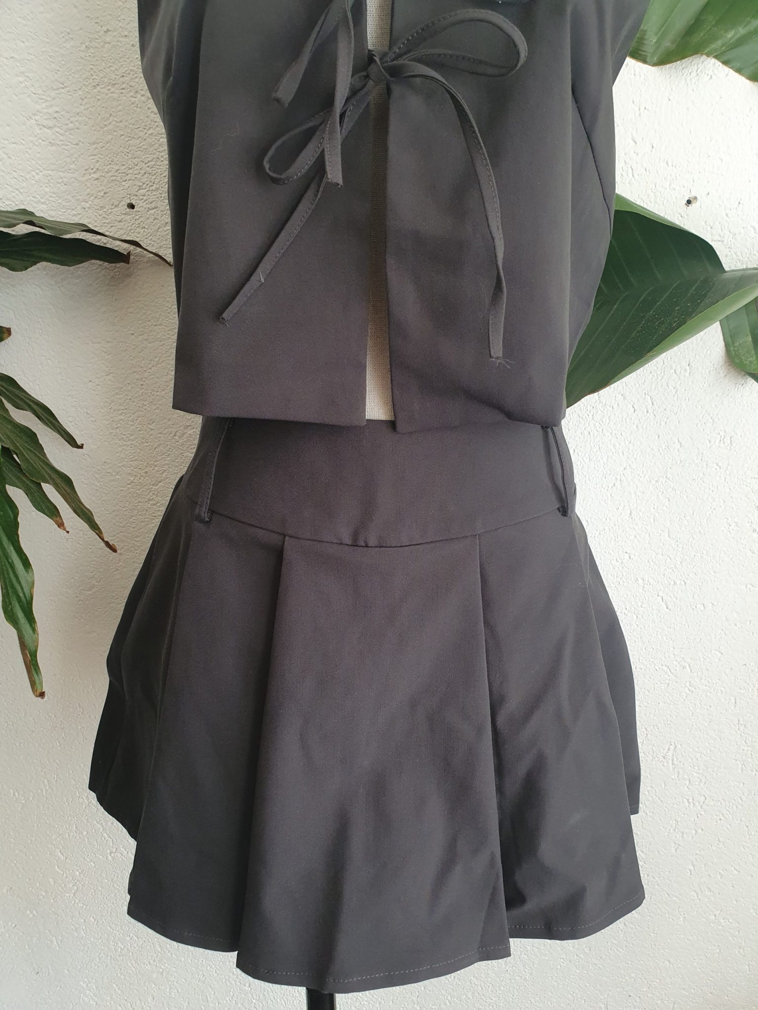 The set includes a crop top and a skirt.