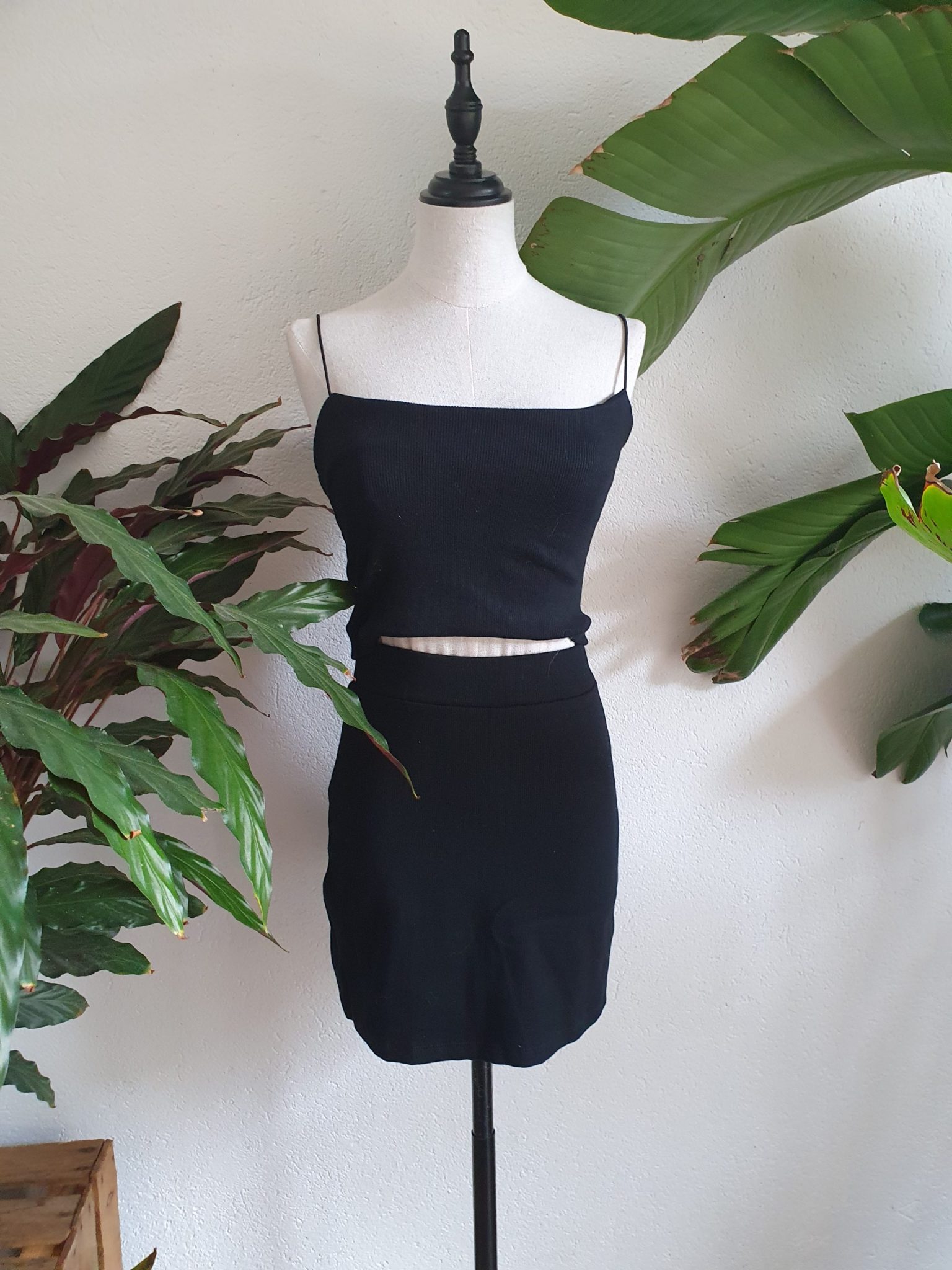 The skirt is 38cm long and has a short inside, the top is 38cm long.