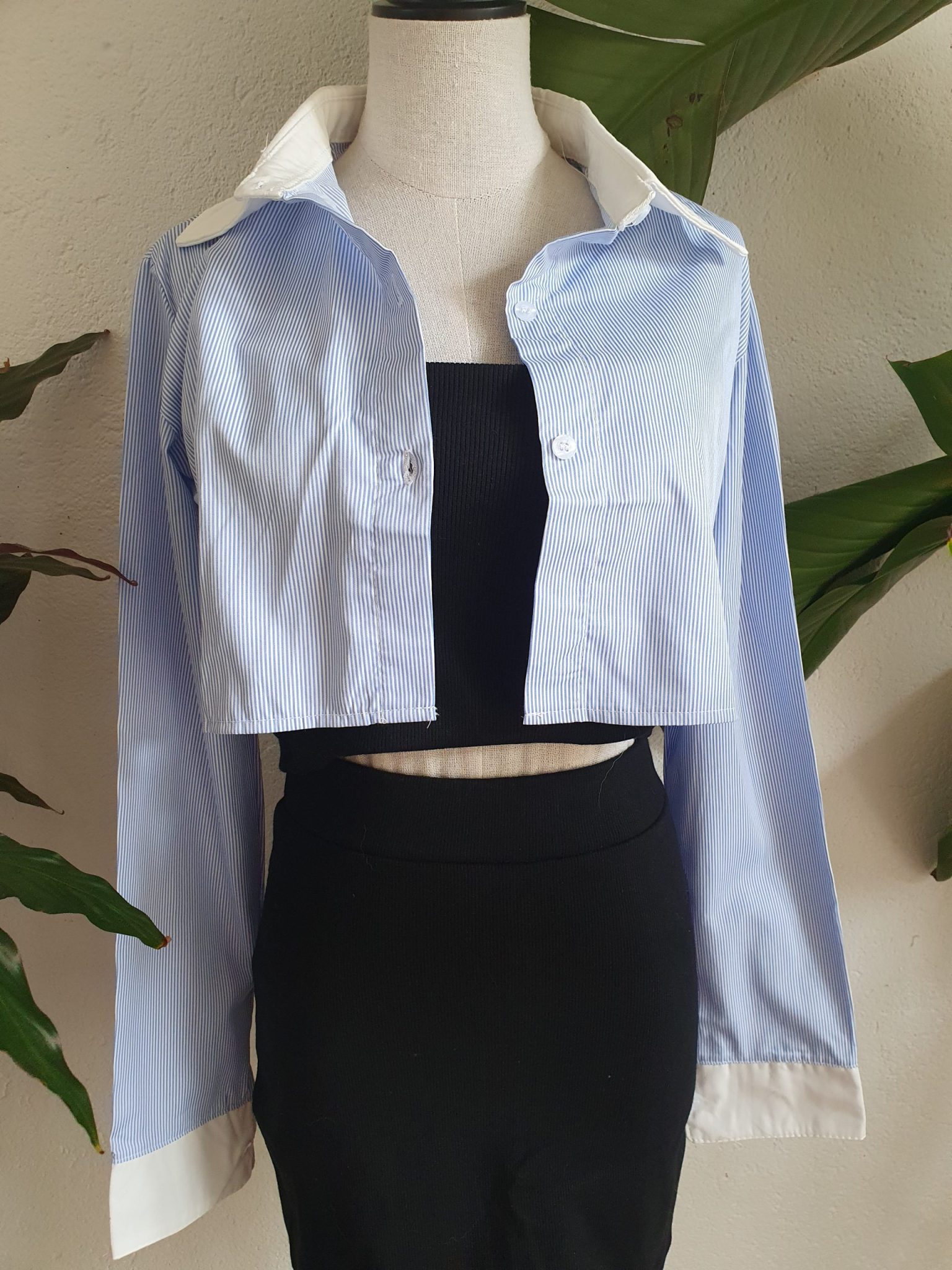 The set includes a top and a skirt and a blouse.