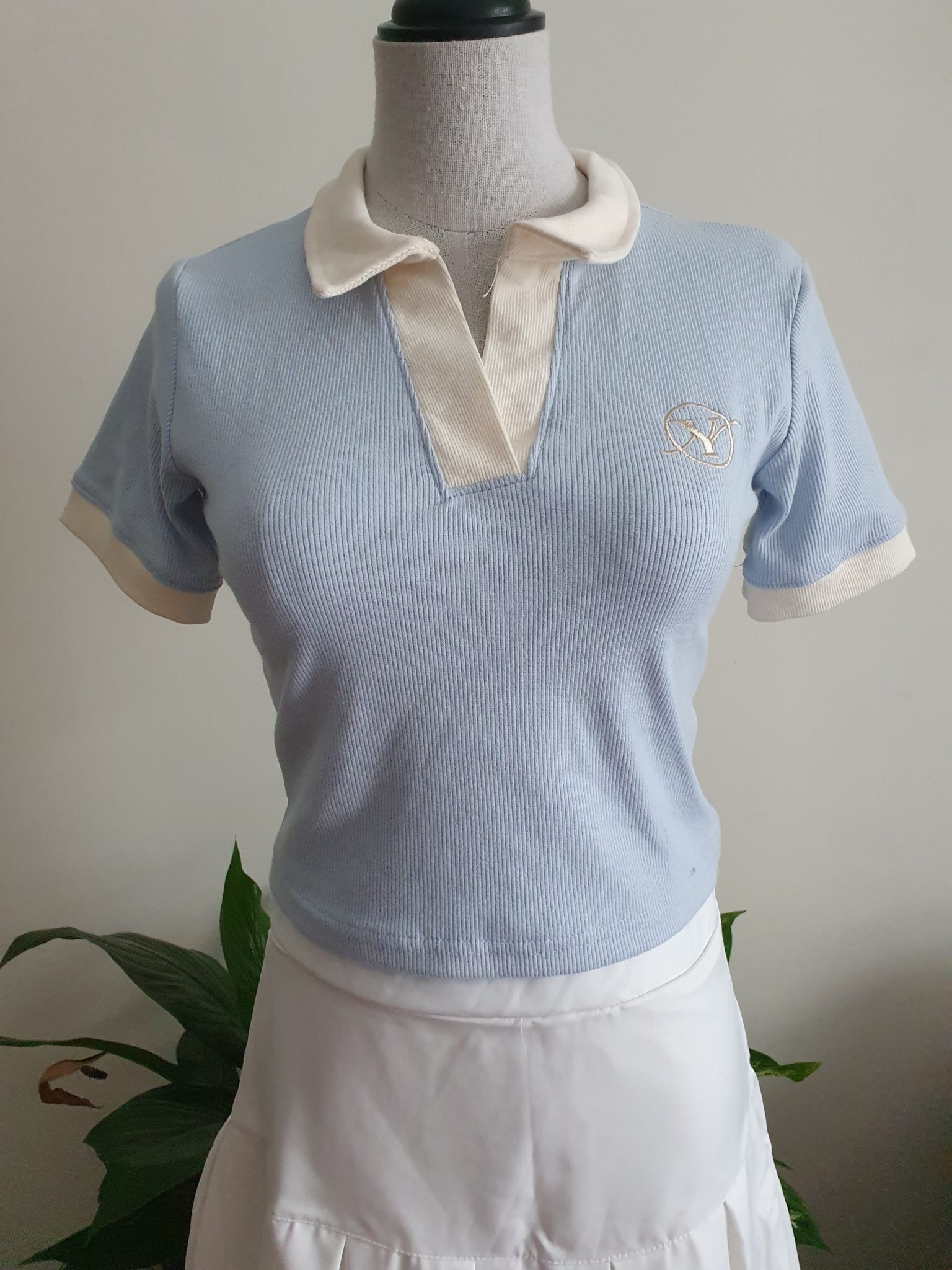 The set includes a croptop and a skirt.