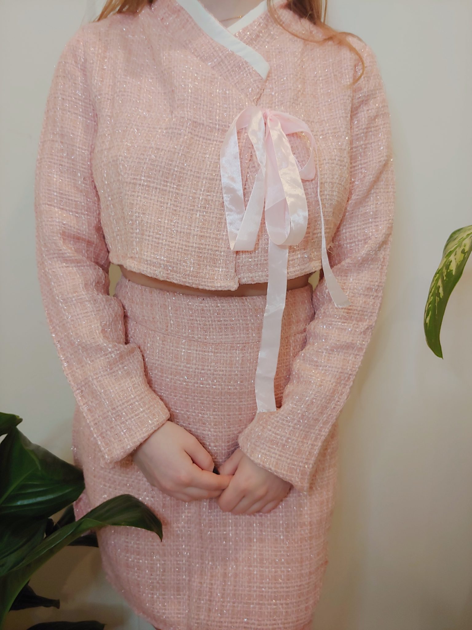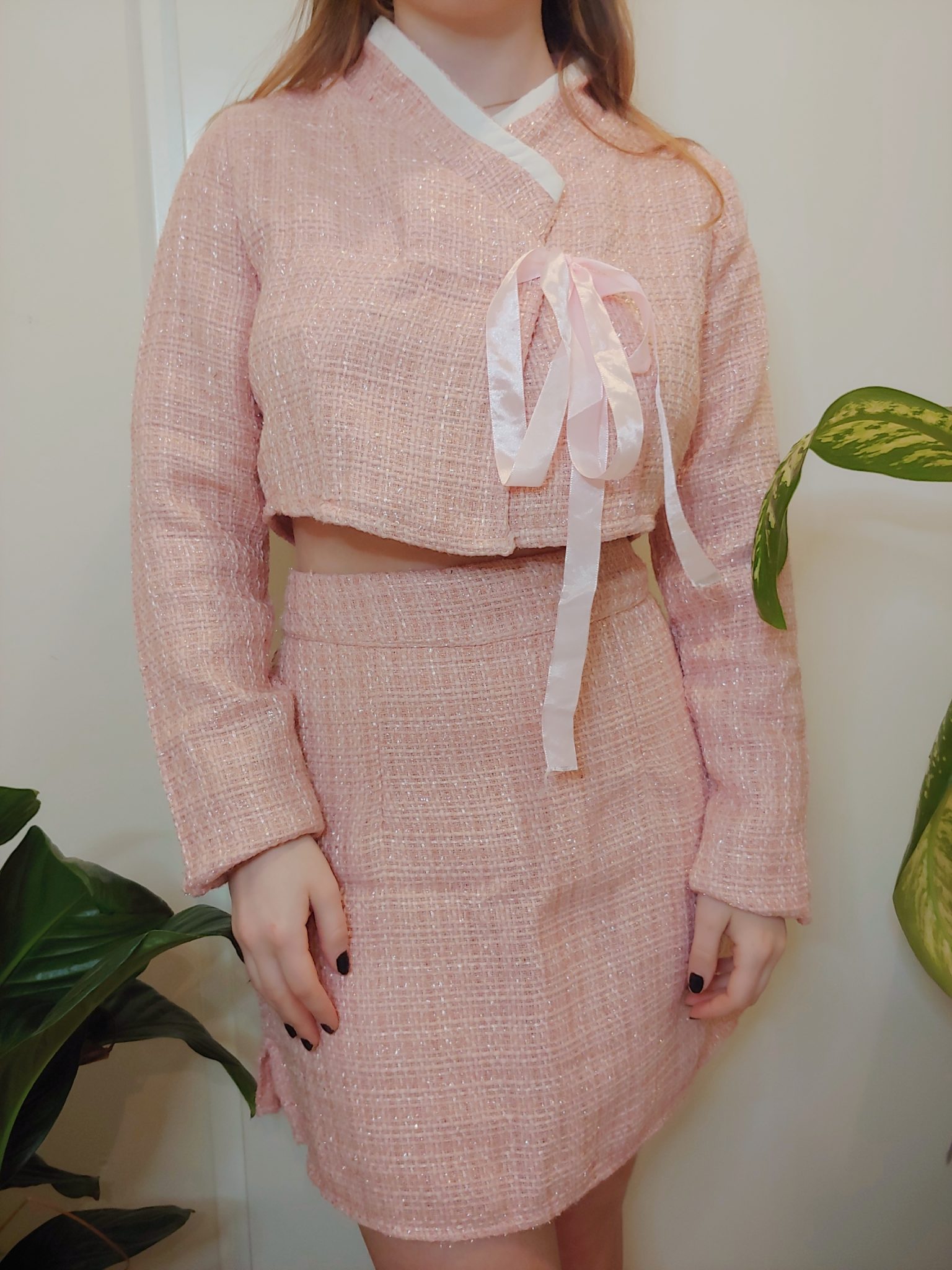 Tweed fabric. Yoona set includes a top and a skirt.